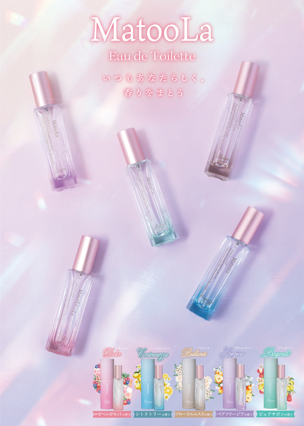 自身の個性を表現する香りに着目し制作されたオードトワレでは、すべての女性がお気に入りの香りを見つけられます。お気に入りの香りを纏うことで、自分の自信に繋がるそんな香りを選考しました。